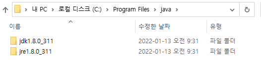 jdk와 jre가 설치된 모습.