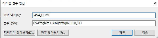 3) JAVA_HOME 환경 변수 생성