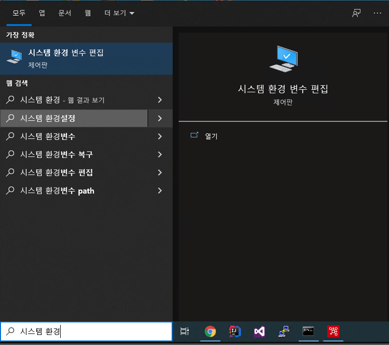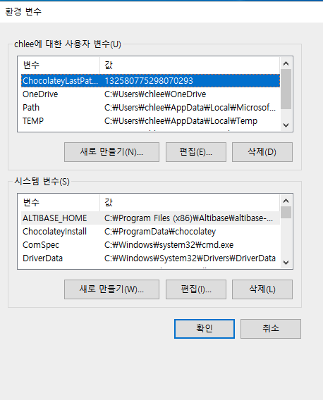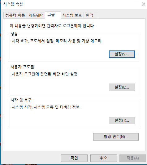 제어판 -> 시스템 환경 변수 편집 클릭 후