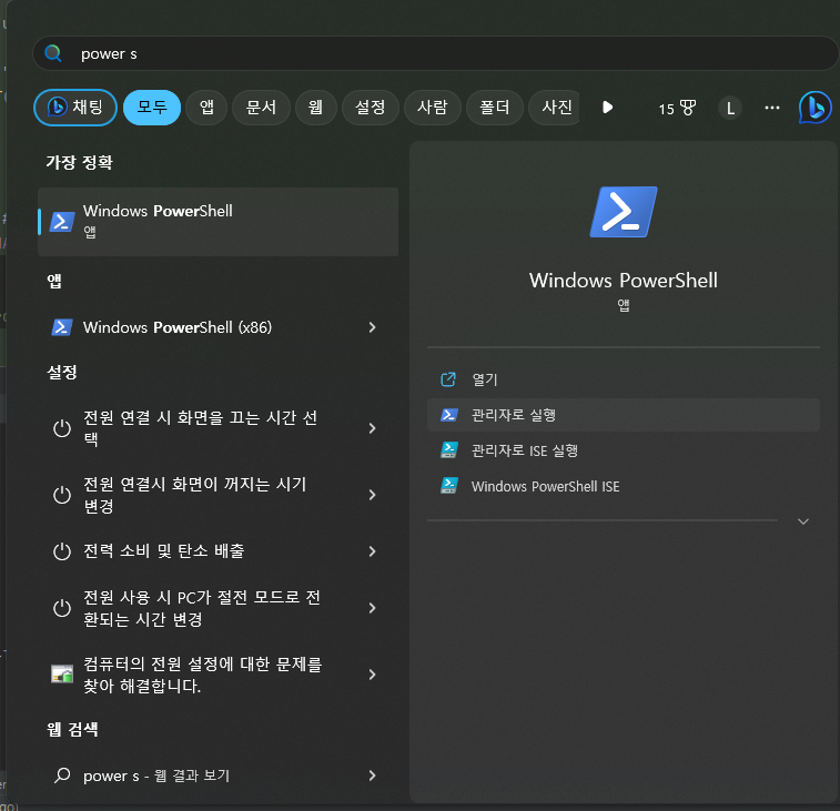 1. Posershell 관리자로 실행
