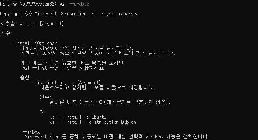 wsl --update 명령어를 날려줬다.