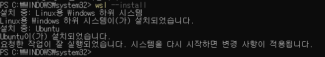 wsl --install 명령어를 날려줬다.