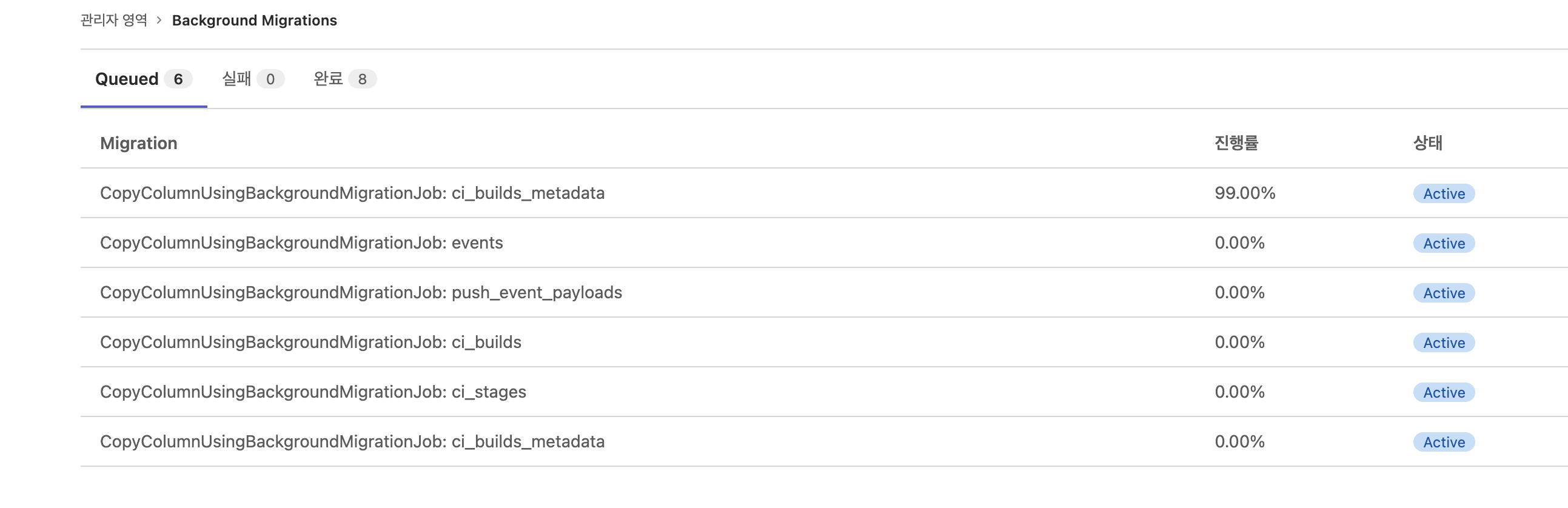 위의 화면에서 Background Migration의 현황을 확인 할 수 있다.