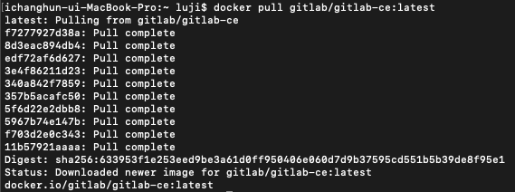 gitlab/ce 버전의 이미지가 정상적으로 pull된것을 확인 할 수 있다.