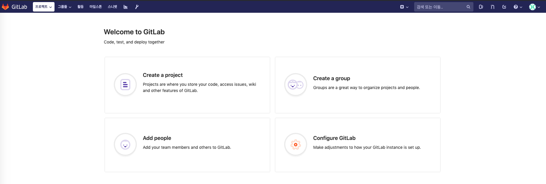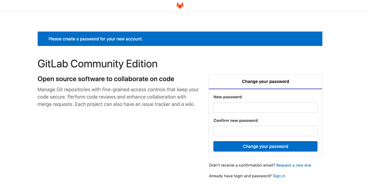 http://127.0.0.1:8140/로 접속하면 도커 이미지로 올라가있는 깃랩에 접속 할 수있다.
